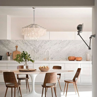 Hoy en día la serie Tulip se ha convertido en todo un clásico del diseño, y en especial la mesa la encontramos en muchos proyectos. Personalmente mi combinación preferida es la tapa de mármol, pie de aluminio y sillas de madera.